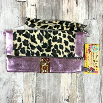Hot Bags Clutch tas, roze metallic kunstleer & luipaardprint