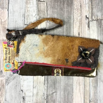 Hot Bags Clutch tas, bruin metallic kunstleer & koeienprint