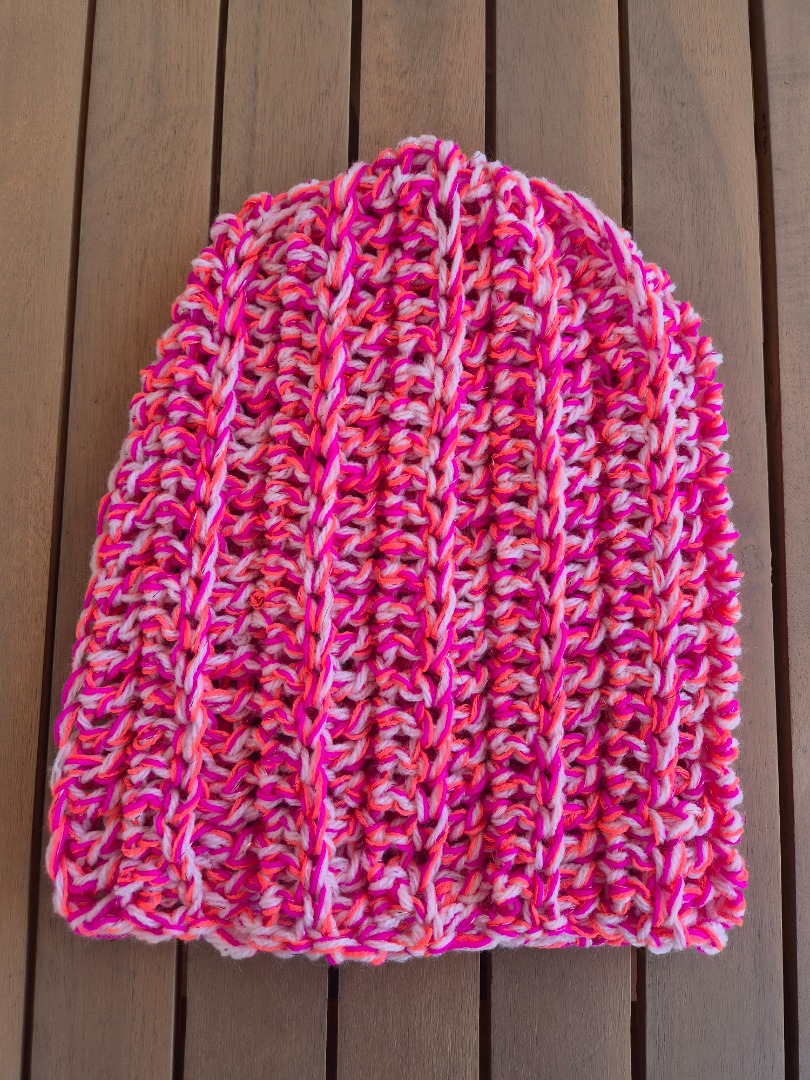 Geef je outfit een kleurrijke boost met deze unieke met de hand gehaakte beanie. Deze superleuke muts in roze, oranje en creme tinten wordt volledig met de hand vervaardigd, waardoor geen enkel exemplaar exact hetzelfde is. Of je nu op zoek bent naar een opvallend accessoire voor een festival of een warme toevoeging aan je wintergarderobe, met deze Ibiza stijl muts haal je een echt 'one-of-a-kind' item in huis.