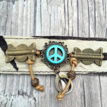 Cuff bracelet met Turquoise steen en hangertje. Lengte 20/21 cm - Breedte 4 cm